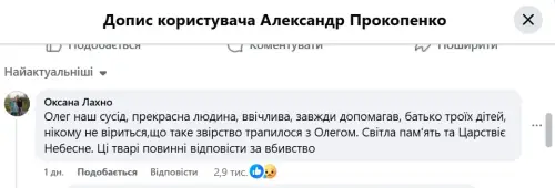 У коментарі під публікацією Прокопенка користувачка Оксана Лахно, яка відрекомендувалася сусідкою покійного, підкреслила, що у чоловіка було троє дітей.