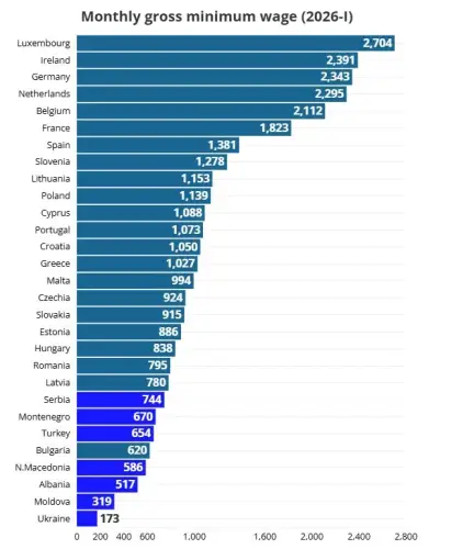 Загалом близько 12,8 млн робітників у 22 державах ЄС отримують мінімальну платню чи менше. При цьому майже третина з них не очікує збільшення до січня 2026 року. Крім того, навіть у державах із невеликими прибутками в межах ЄС мінімальна платня значно перевищує українську: у Болгарії вона складає €620, в Румунії – приблизно €795, в Угорщині – €838.