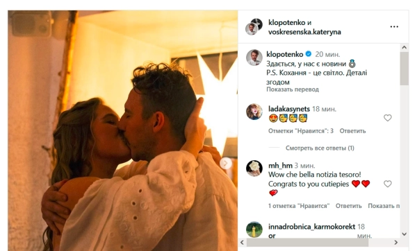 “Здається, у нас є новини P.S. Любов – це світло. Подробиці згодом”, – написав Клопотенко, додавши смайлик у вигляді обручки.