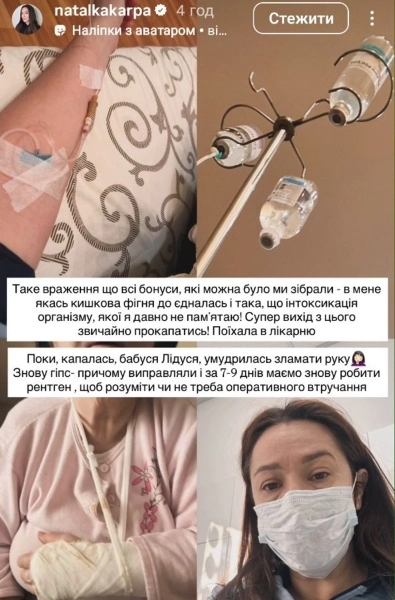 Зі слів Карпи, її стан різко погіршився через важку інтоксикацію тіла, спровоковану інфекційним захворюванням. Внаслідок цього лікарі прийняли рішення про стаціонарне лікування, де співачці призначили крапельне введення ліків та додаткові обстеження.