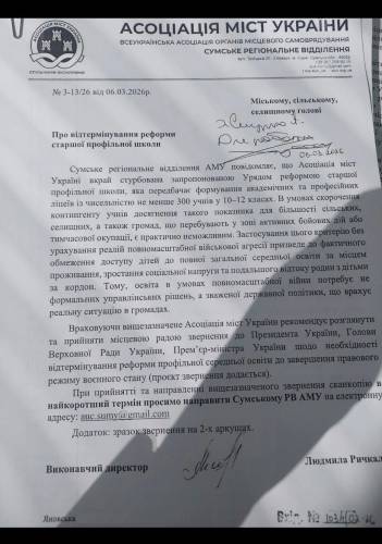 “У мережі циркулюють документи Сумського та Хмельницького регіональних підрозділів асоціації, які роз’яснюють механізм цього протистояння. Регіональні відділення АМУ розповсюджують серед громад готові зразки рішень і в прямому сенсі вимагають від місцевих рад голосувати за звернення до президента, голови ВРУ та прем’єр-міністра з вимогою припинити реформу. Крім того, вони закликають органи місцевого самоврядування підтримати петицію з вимогою призупинити реформу. Більш того, у цих листах АМУ визначає крайні терміни й примушує громади інформувати асоціацію про результати голосування, відправляючи скан-копії ухвалених рішень”, – написав Воропаєв.