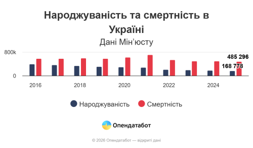 Україна: зниження летальності, проте рівень народжень втричі нижчий. Графіка