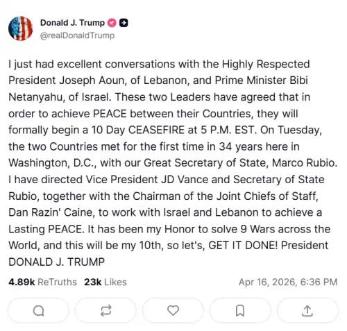 — Lebanese Presidency (@LBpresidency) April 16, 2026