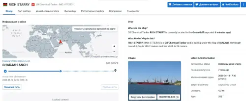 За інформацією MarineTraffic, зараз Rich Starry під прапором Малаві перебуває в Оманській затоці, що вказує на успішне подолання Ормузької протоки.